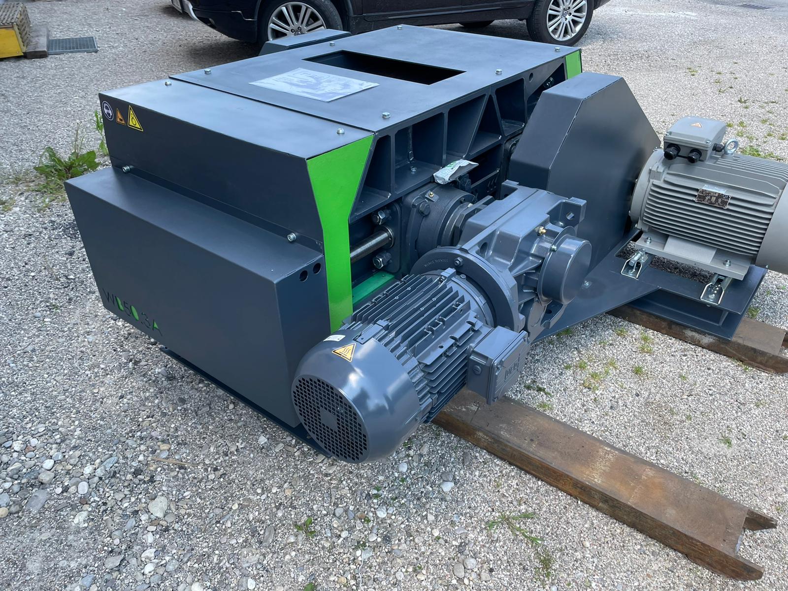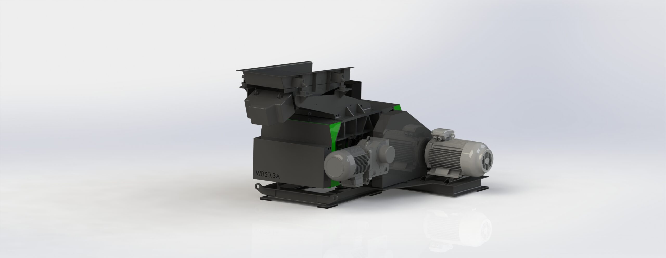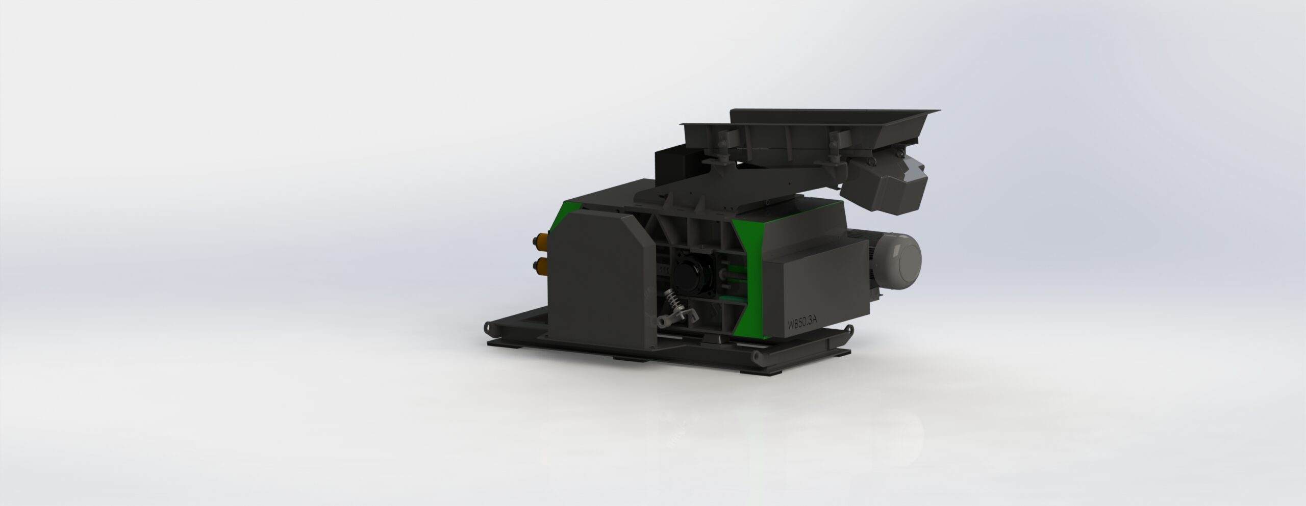 Die bewegliche Walze kann mittels Kettenradverstellung inklusive Getriebemotor bewegt werden und somit der Spalt automatisch eingestellt werden.