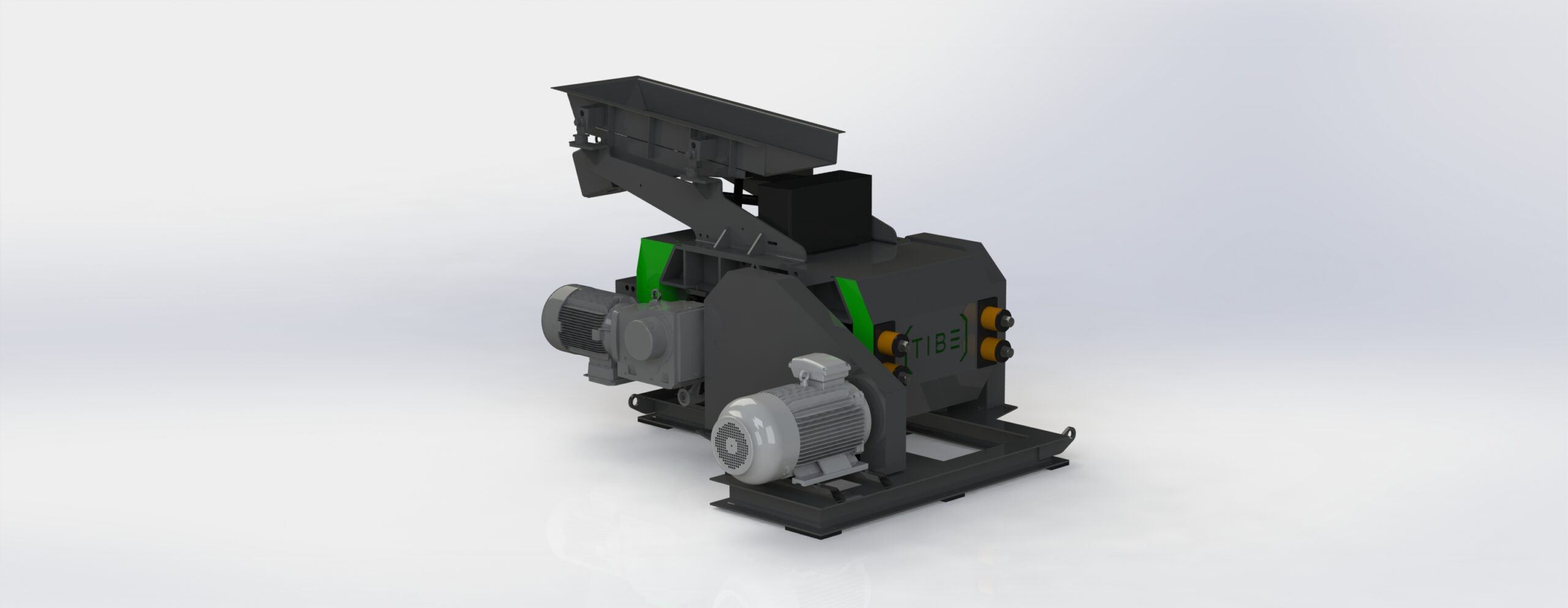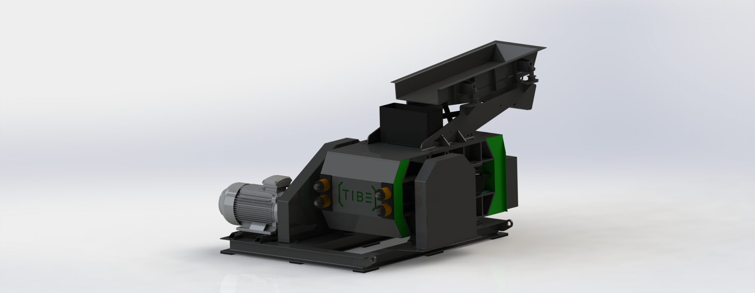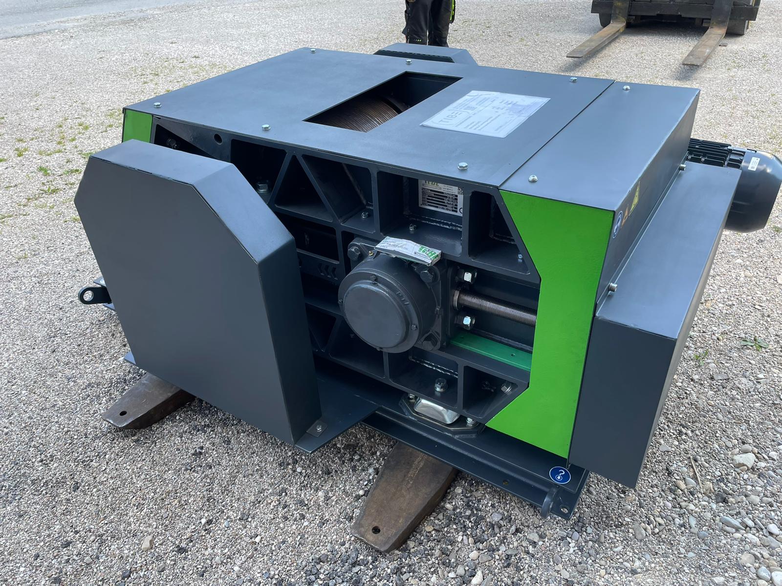 Die bewegliche Walze kann mittels Kettenradverstellung inklusive Getriebemotor bewegt werden und somit der Spalt automatisch eingestellt werden.